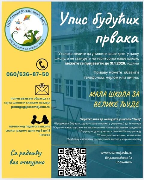 ВАЖНО ОБАВЕШТЕЊЕ ЗА РОДИТЕЉЕ – УПИС ПРВАКА У ШКОЛСКУ 2026/2027. ГОДИНУ